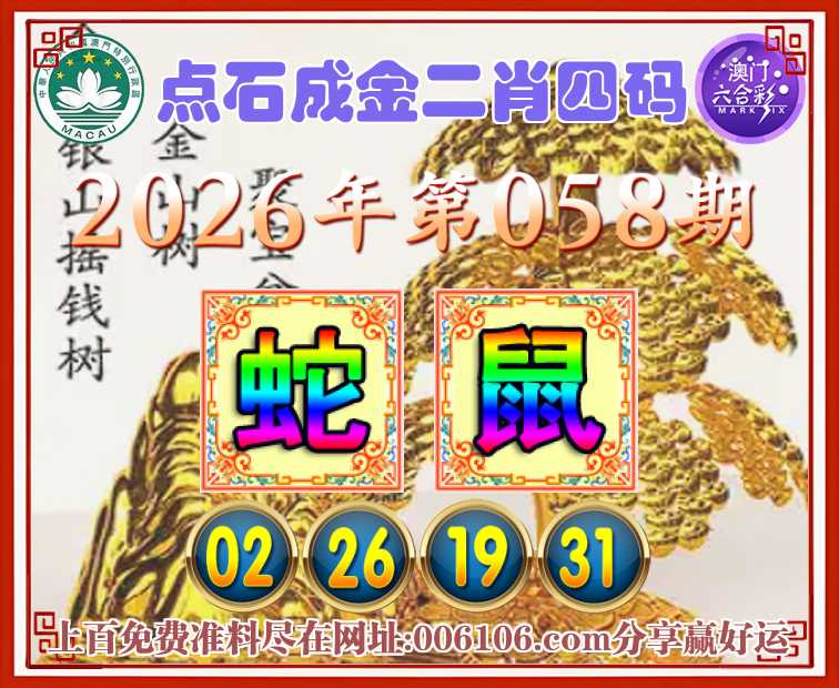 058期:《点石成金》  ♣️二肖四码 ♣️【蛇】【02.26.19.31】开:鼠31准公开见证