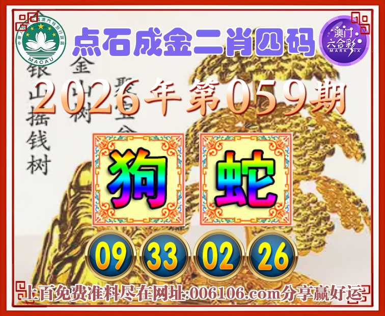 059期:《点石成金》  ♣️二肖四码 ♣️【狗蛇】【09.33.02.26】开:鸡10
