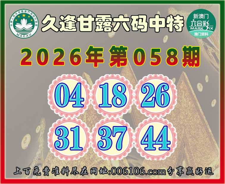 058期:【久逢甘露】 🚵‍♀️六码中特🚵‍♀️【04.18.26.31.37.44】开:31准公开见证