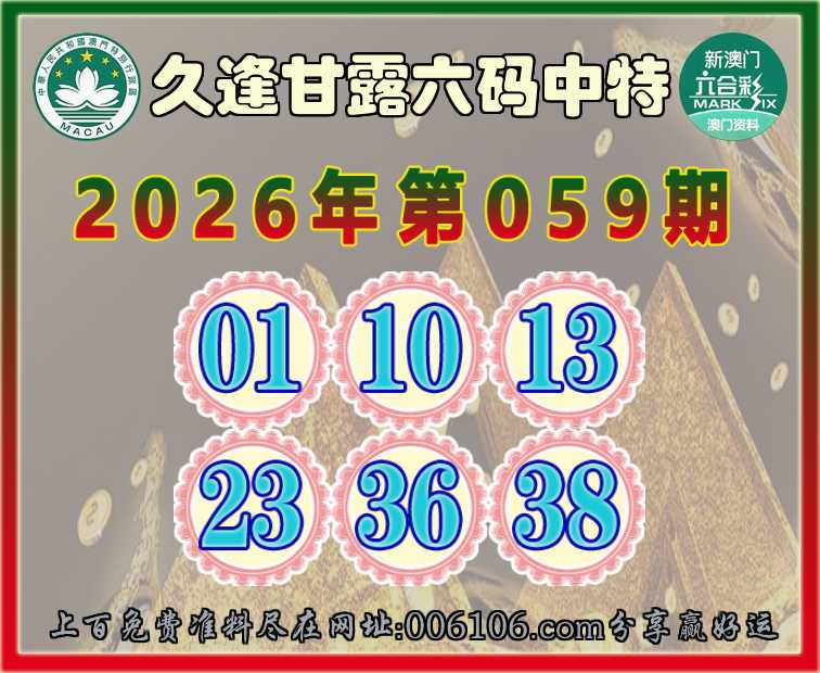 059期:【久逢甘露】 🚵‍♀️六码中特🚵‍♀️【01.10.13.23.36.38】开:10准公开见证