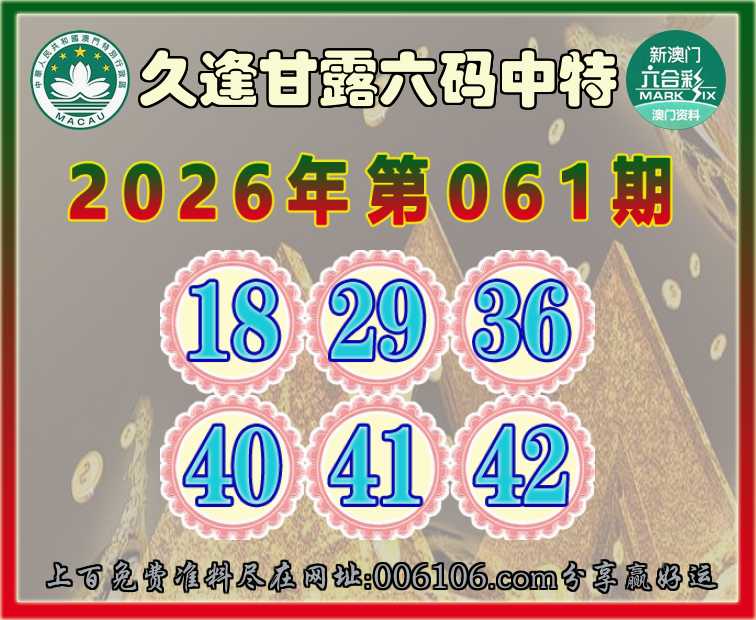 061期:【久逢甘露】 🚵‍♀️六码中特🚵‍♀️【18.29.36.40.41.42】开:29准公开见证