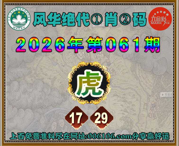 061期:〖风华绝代〗 ⛩️①肖②码⛩️【】【17.29】开:虎29准公开见证