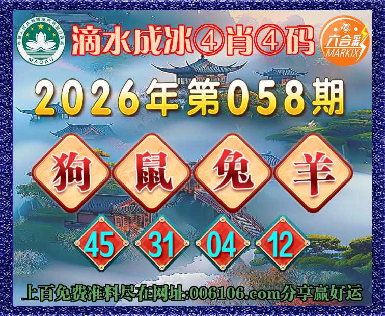 058期:《滴水成冰》 ♥️④肖④码♥️【狗兔羊】【45.31.04.12】开:鼠31准公开见证