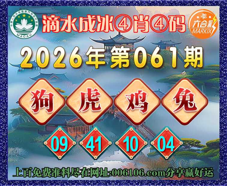 061期:《滴水成冰》 ♥️④肖④码♥️【狗鸡兔】【09.41.10.04】开:虎29准公开见证