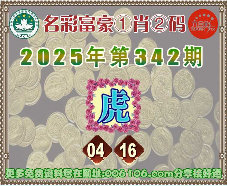 342期:〖名彩富豪〗 ♣️①肖②码♣️【】【04.16】开:虎04准公开见证