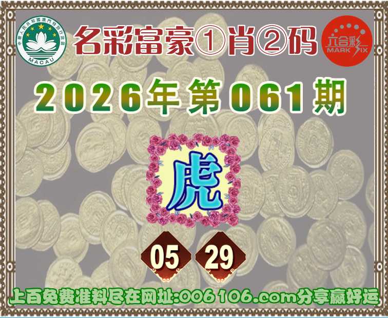061期:〖名彩富豪〗 ♣️①肖②码♣️【】【05.29】开:虎29准公开见证